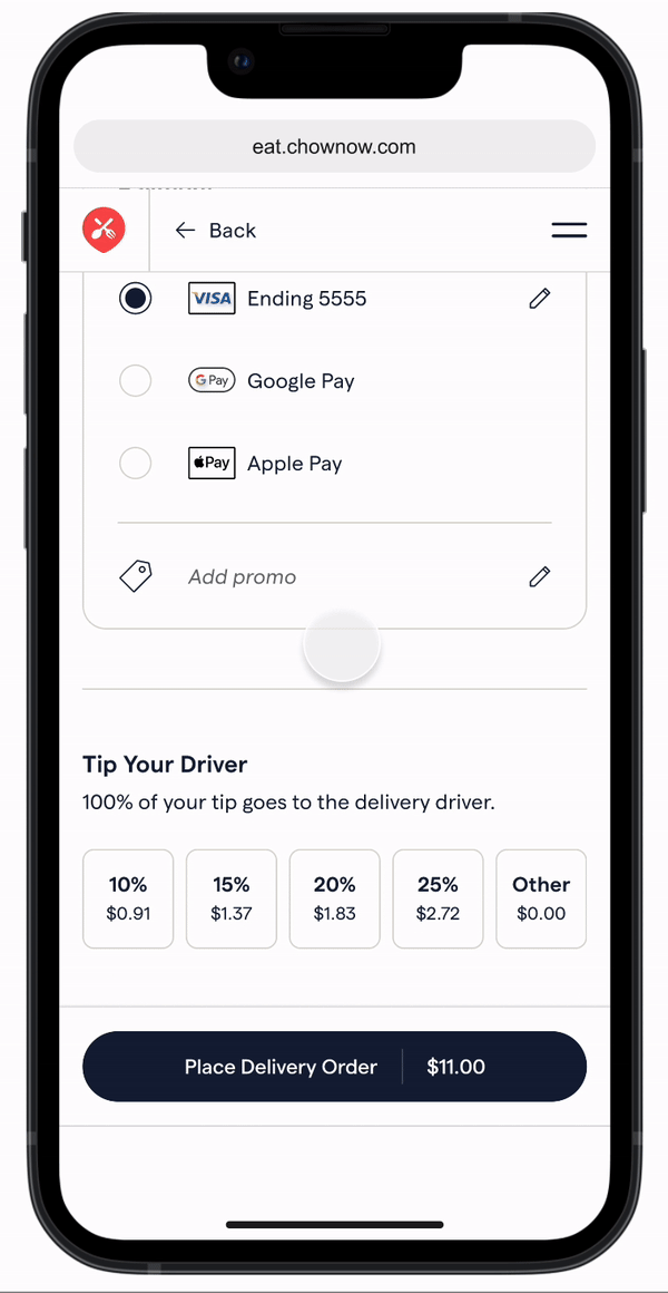 ChowNow doesn’t have its own delivery drivers and uses third party delivery services like DoorDash Drive and Uber. When diners tipped, they were only able to tip the third party driver and couldn’t leave additional tip for the restaurant, leaving many restaurant operators dissatisfied. This capability would be a differentiated feature for ChowNow and support sales goals.